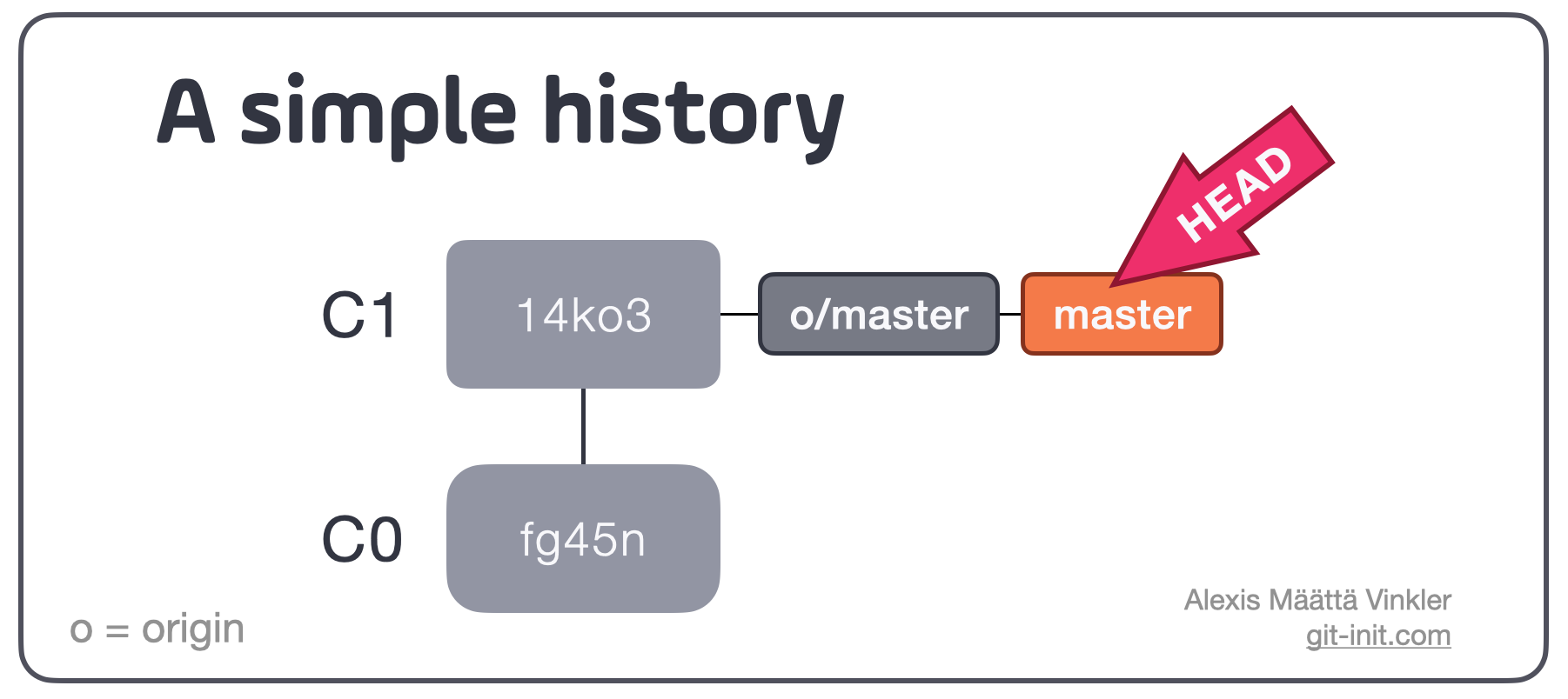 14ko327 (HEAD -> master)Knowing about how commits can be absolutely referenced, either explicitly or implicitly, is crucial to swiftly navigate your history!
